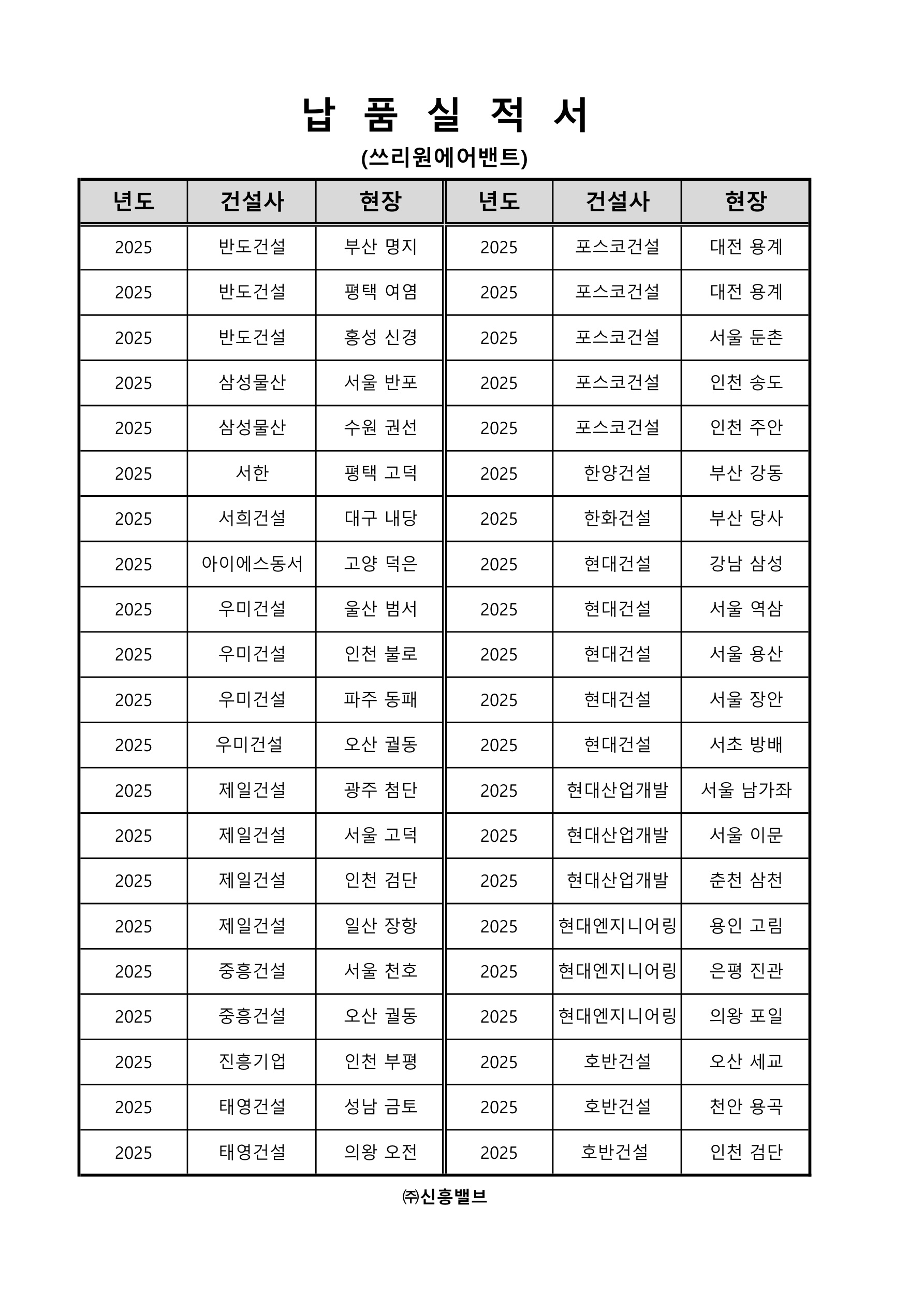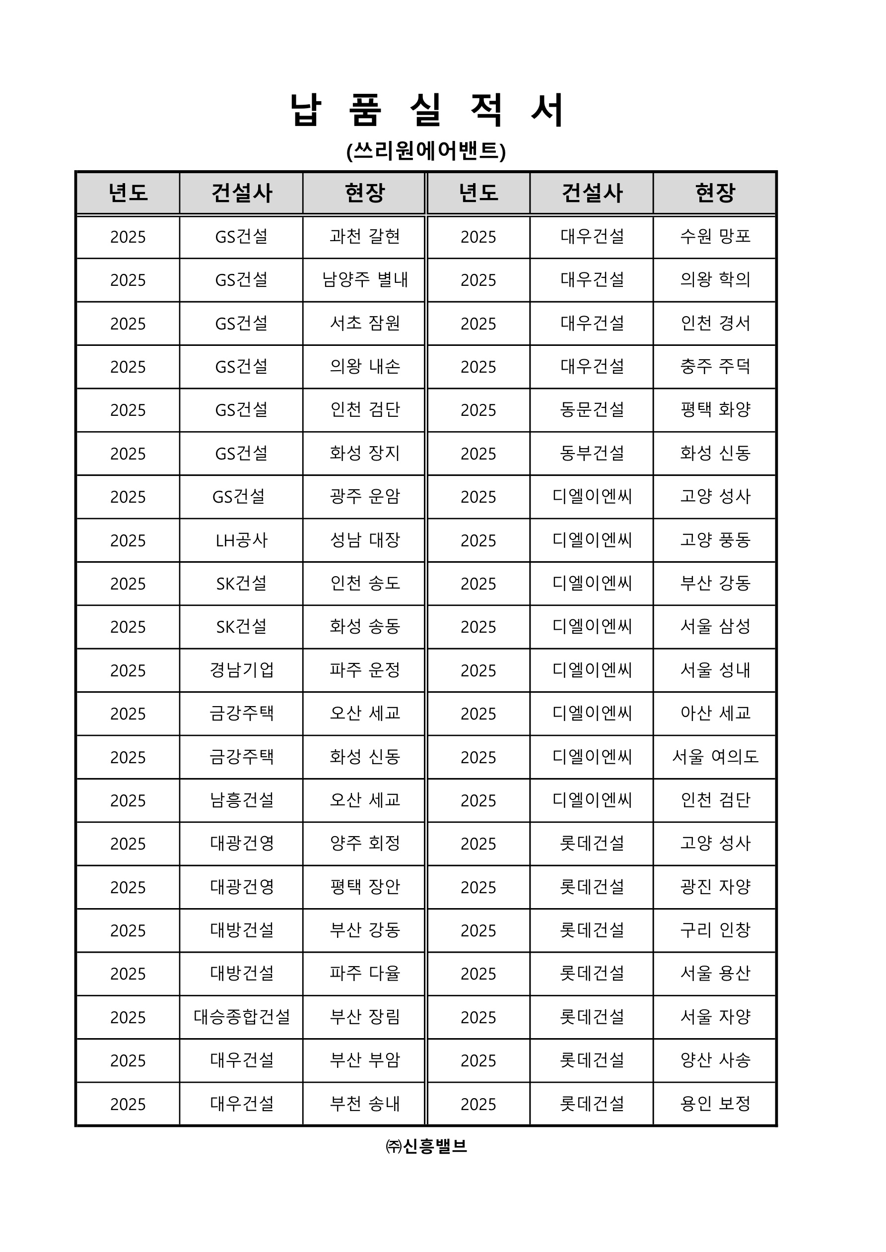 납품실적서(쓰리원에어밴트-2025)