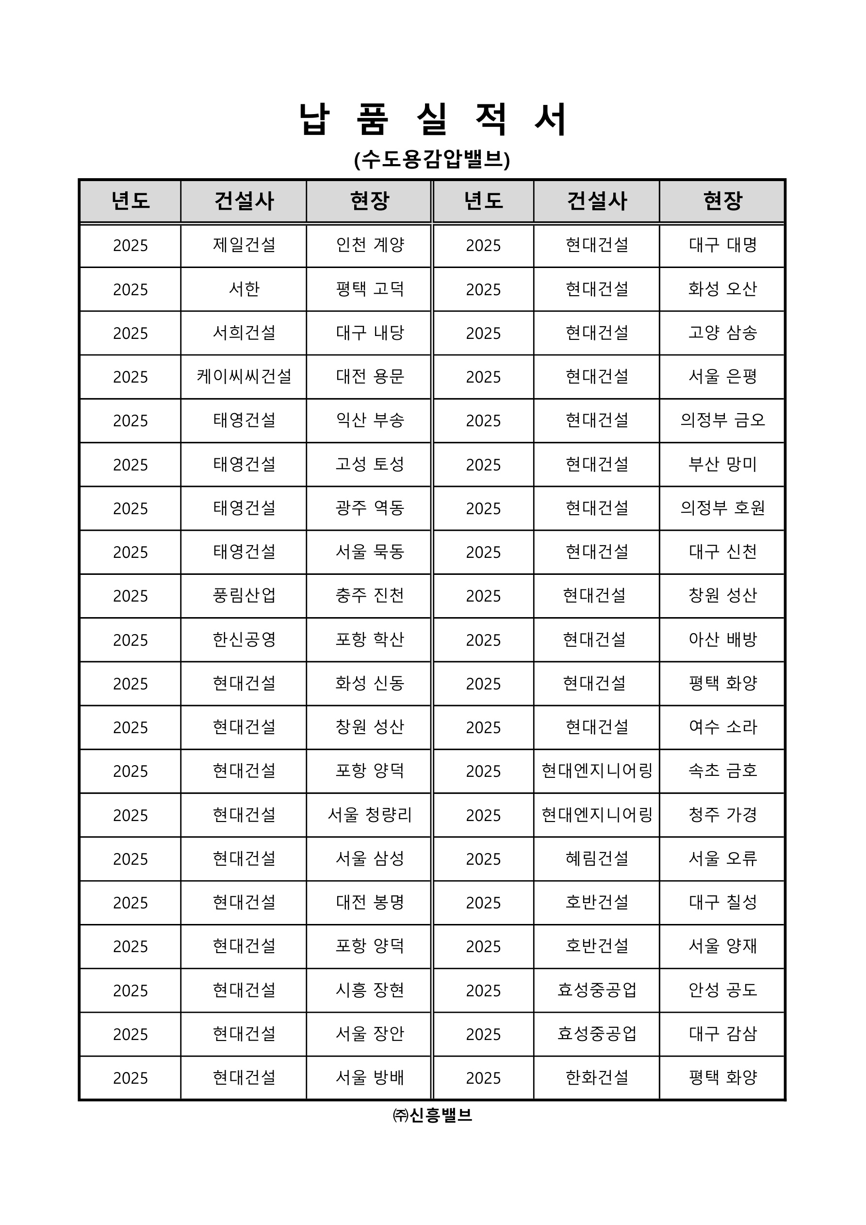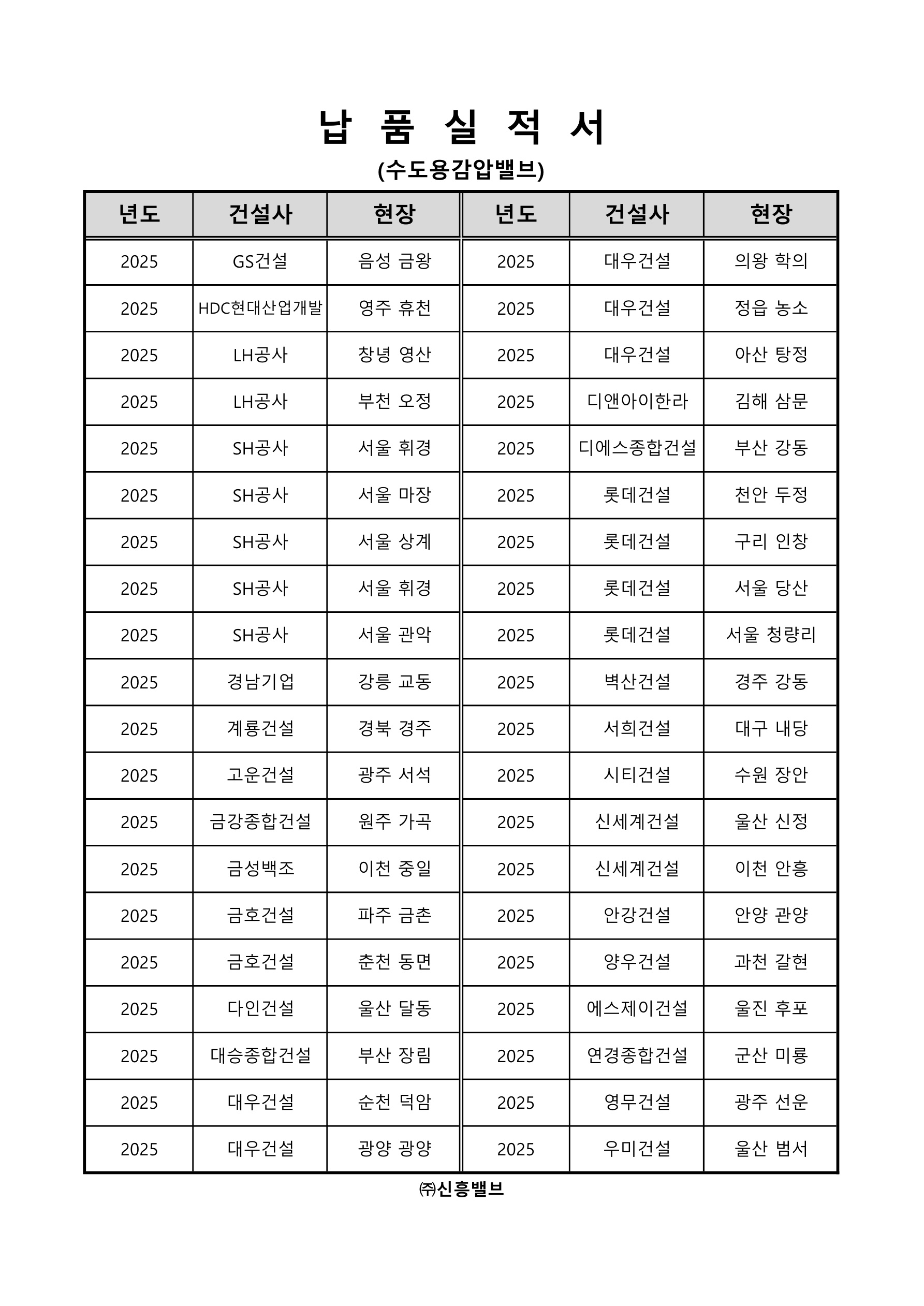 납품실적서(수도용감압밸브-2025)