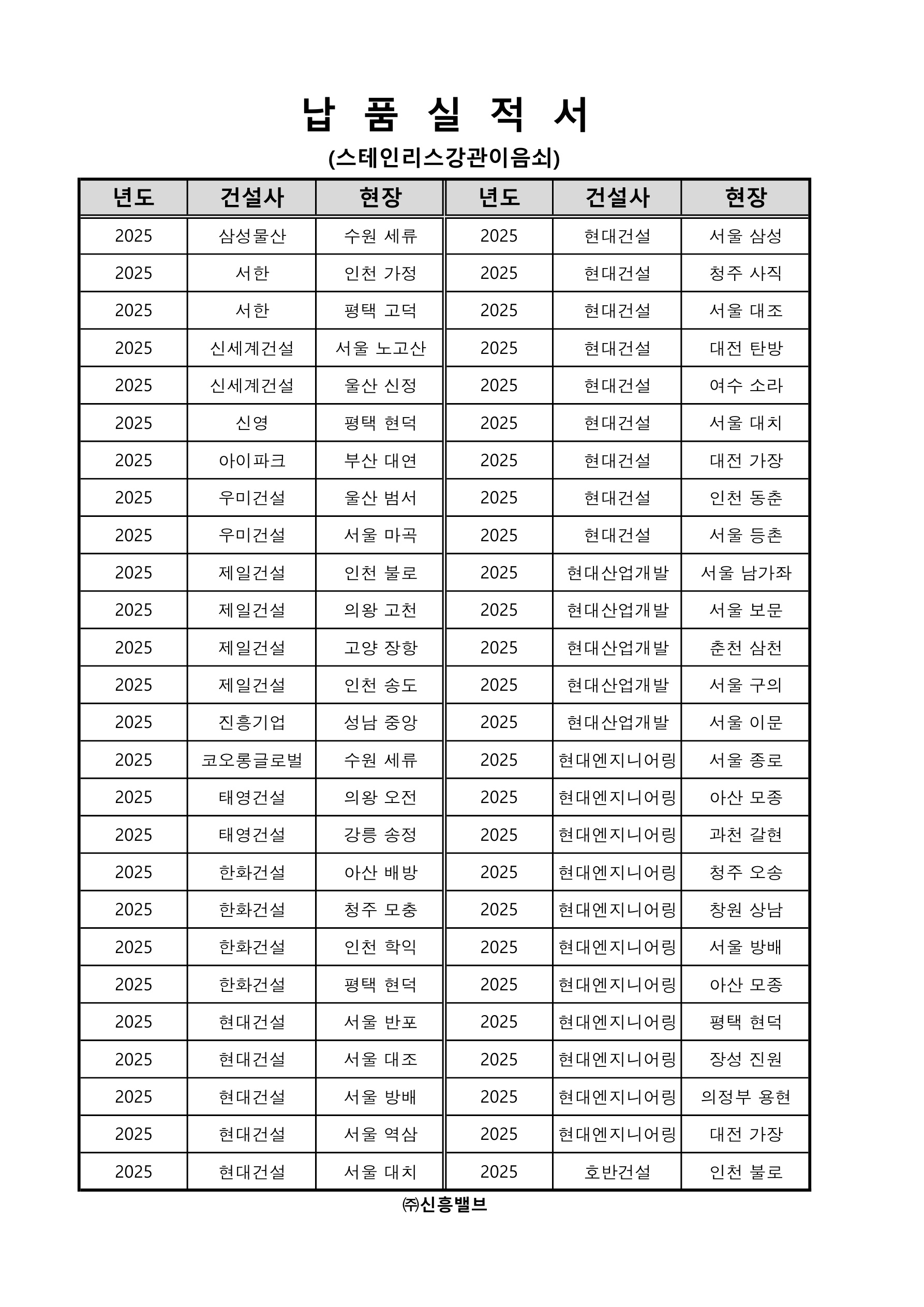 납품실적서(스테인리스강관이음쇠-2025)