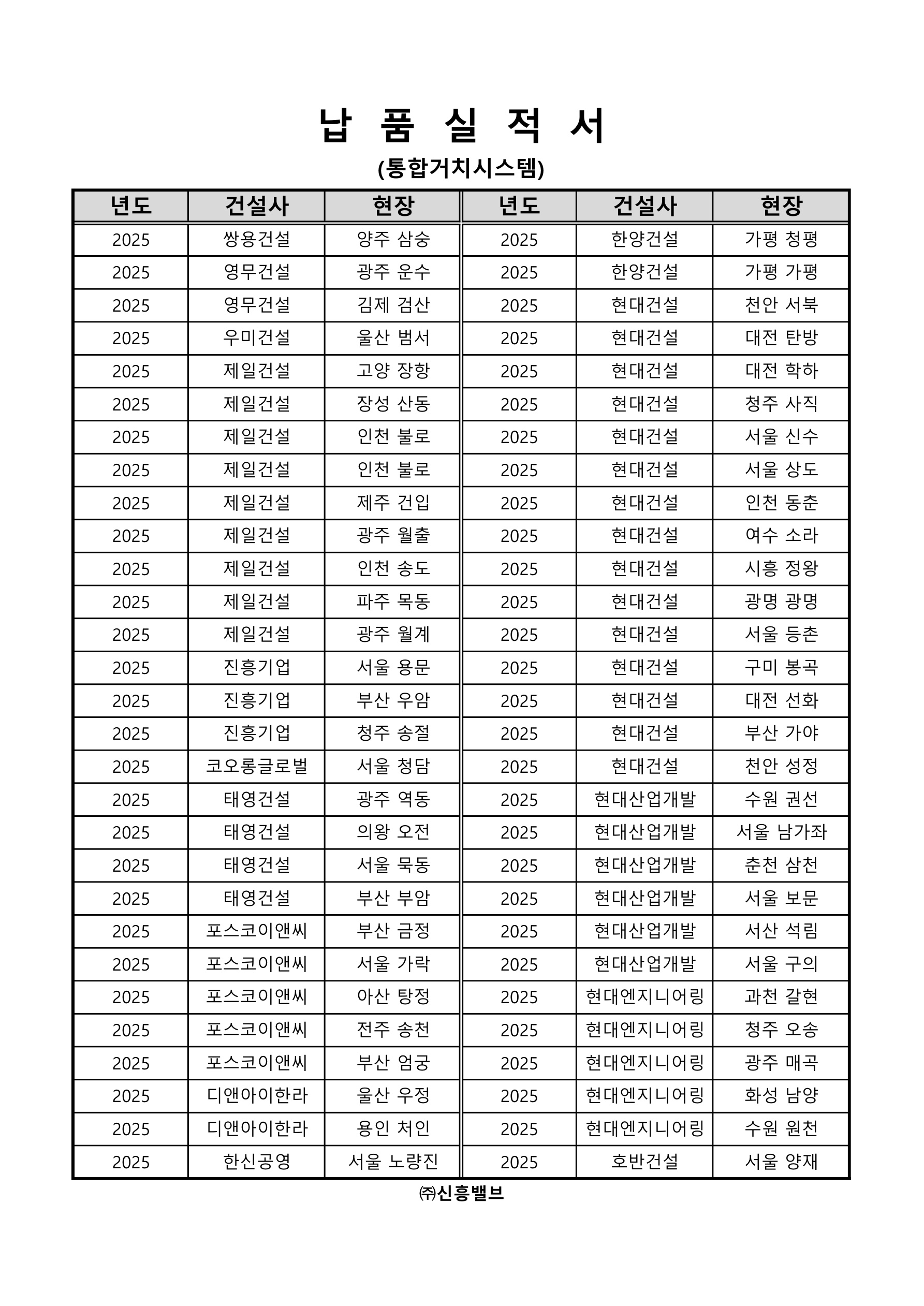 납품실적서(통합거치시스템-2025)