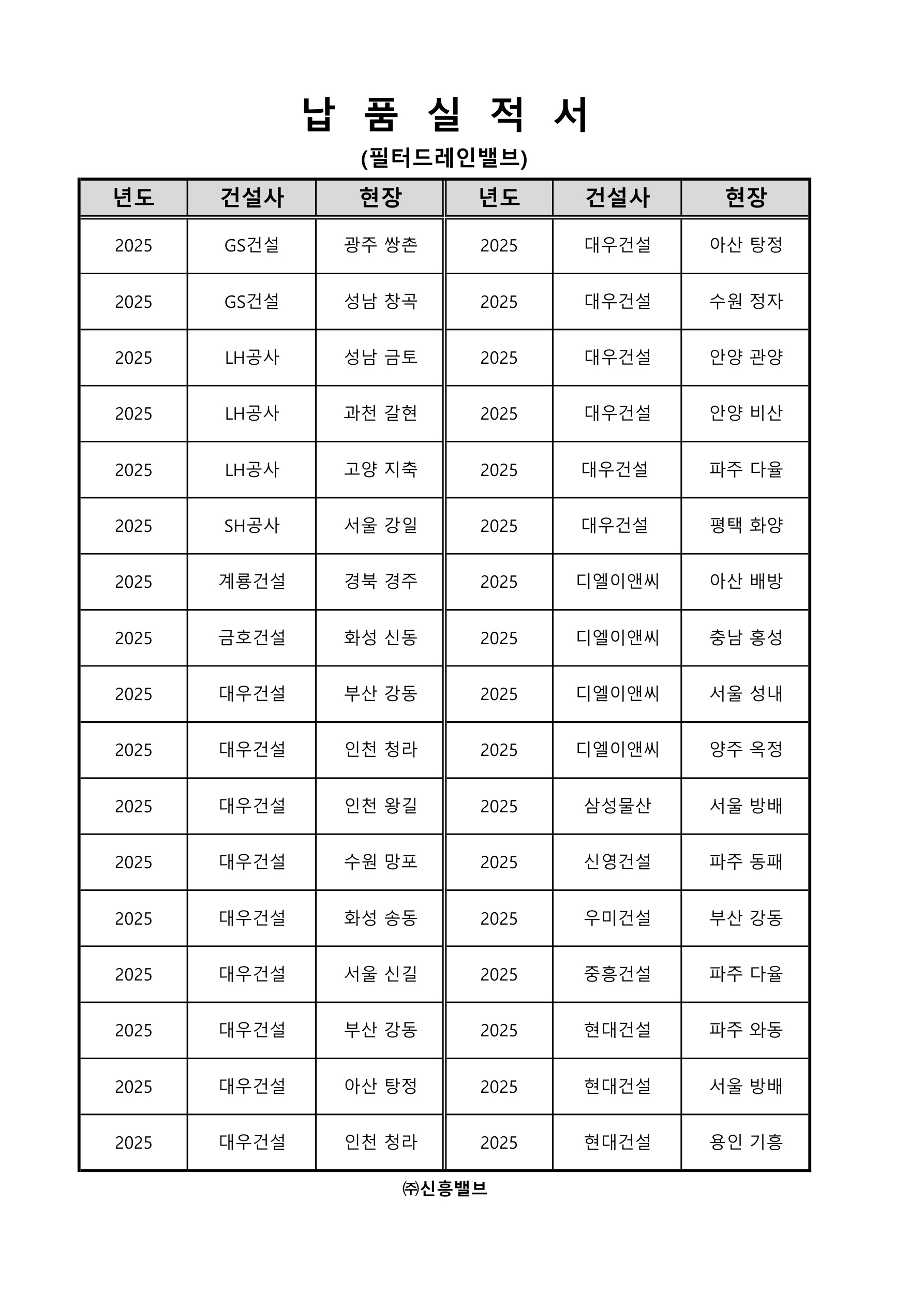 납품실적서(필터드레인밸브-2025)