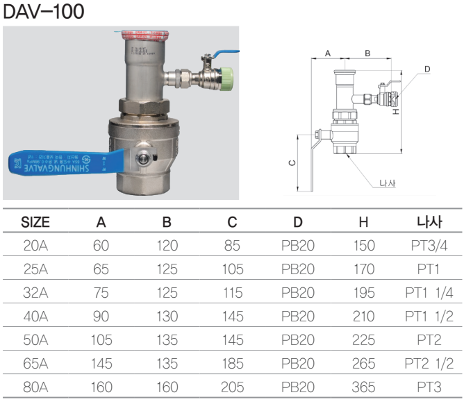 핸들 및 너트는 STS 재질로 녹 발생이 없다.