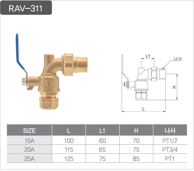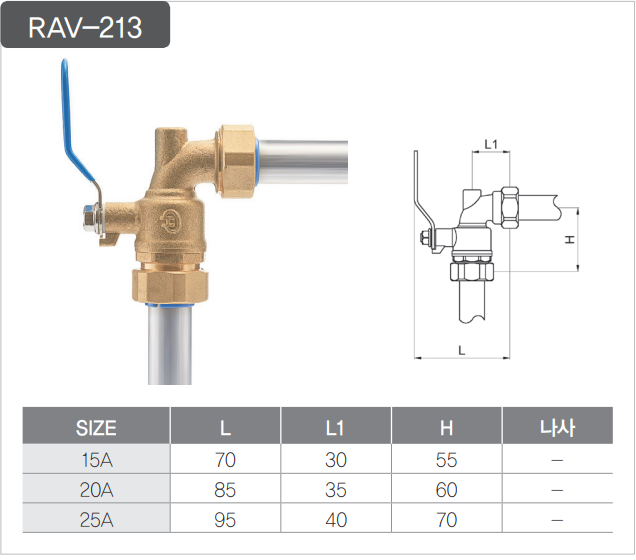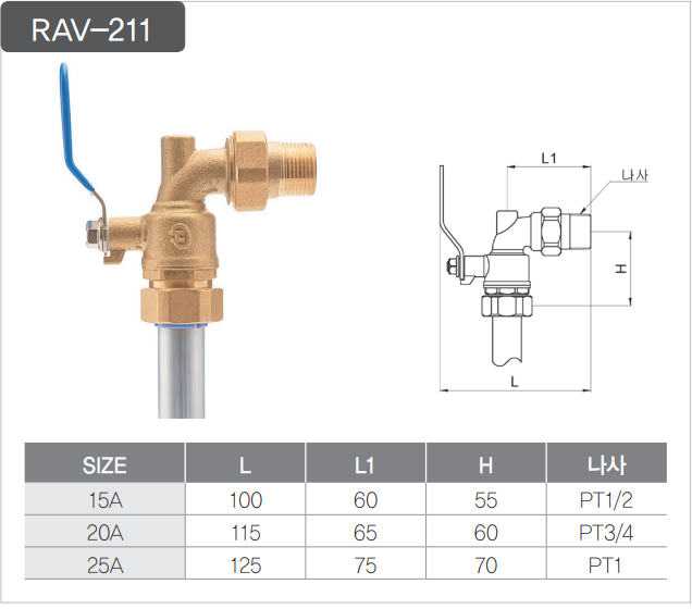 볼밸브와 유니온엘보를 일체화하여 설치공간 확보 및 작업성이 뛰어나다.