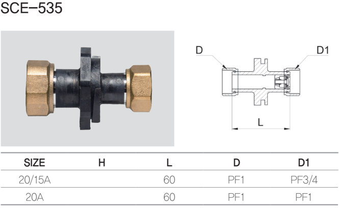 유니온타입으로 설치 및 해체가 간편하여 유지보수가 용이하다. PB파이프 삽입 여부를 육안으로 확인할 수 있다. (SCE-931i)