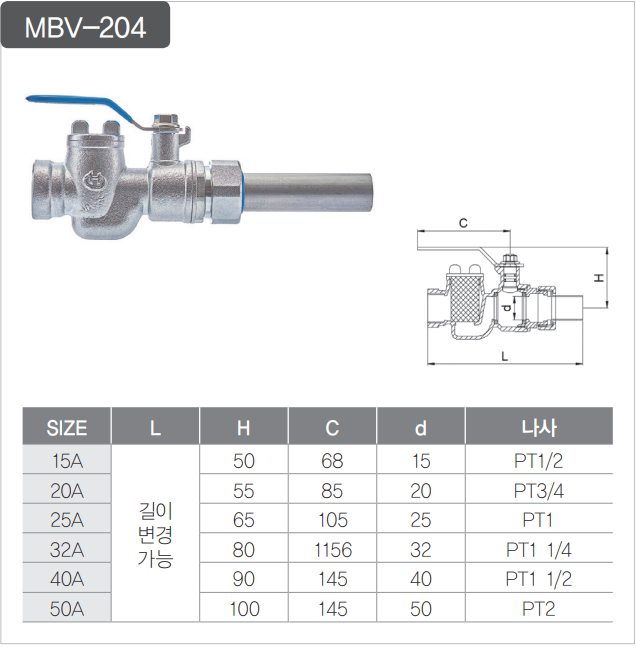 밸브대를 길게하여 보온재 시공이 용이하다.