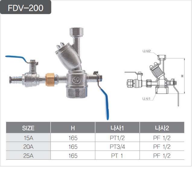 스트레이너와 드레인밸브가 일체화 된 볼밸브로 LH공사 시방에 적용되어 있다.